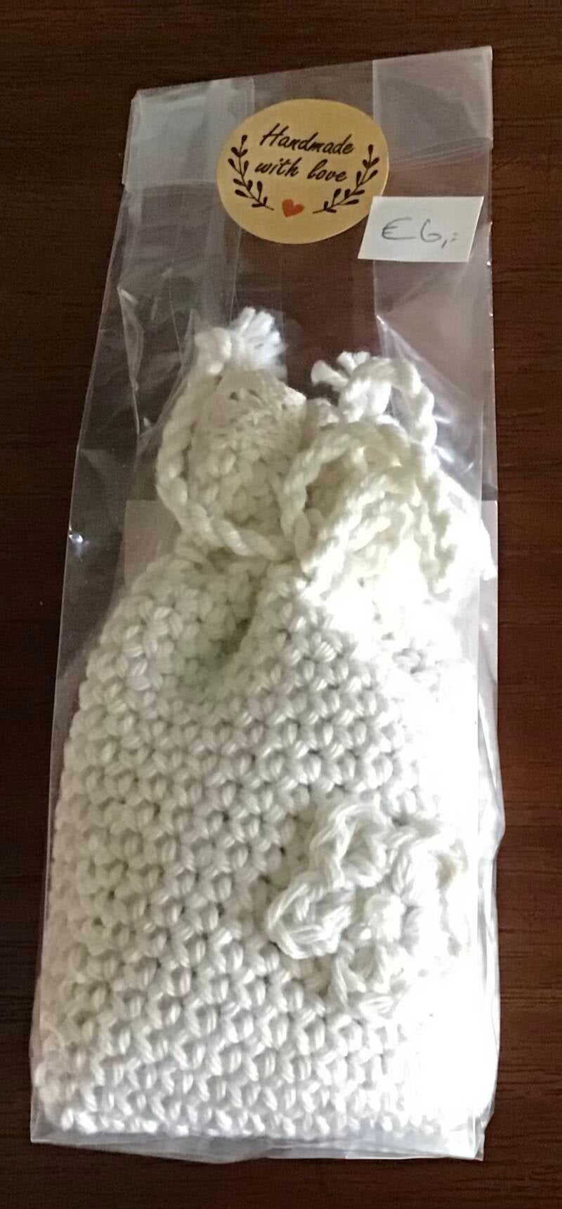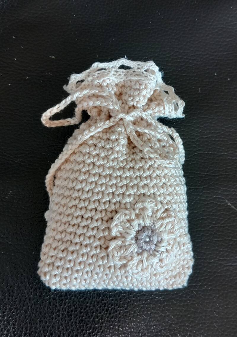 2. Geurzakje wit. Deze heeft een wit gehaakt randje.