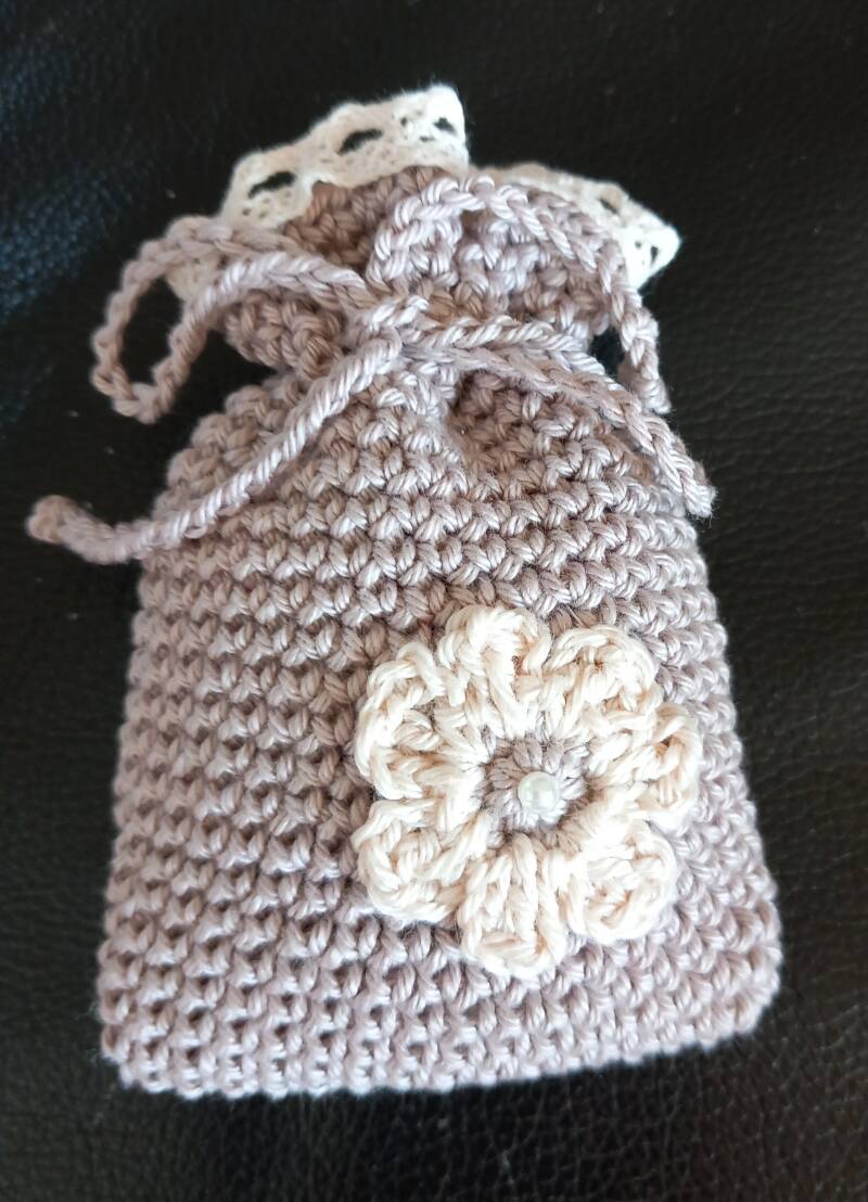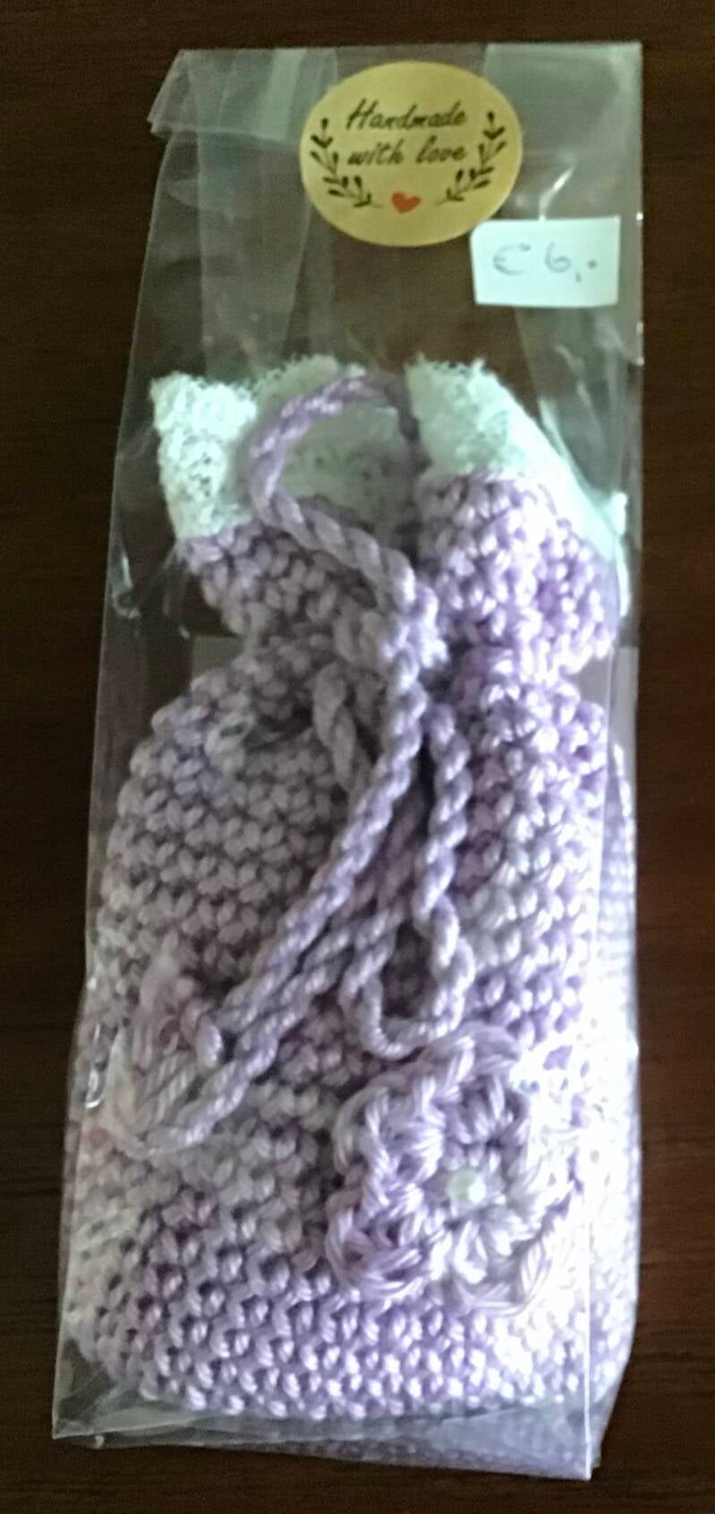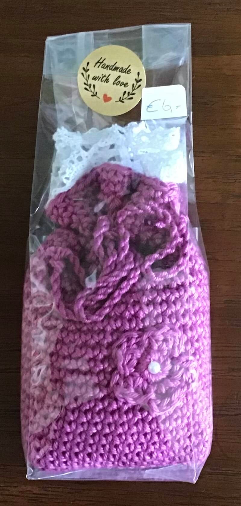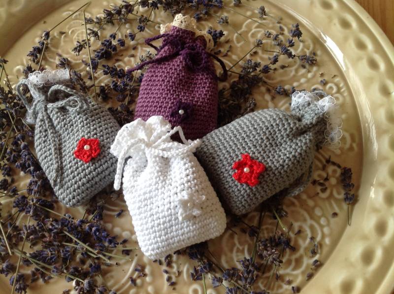 De zakjes kunnen ook op bestelling in een andere kleur worden gehaakt. Wil je ze zelf vullen met lavendel of iets anders? Dan is de prijs per zakje € 5,50.