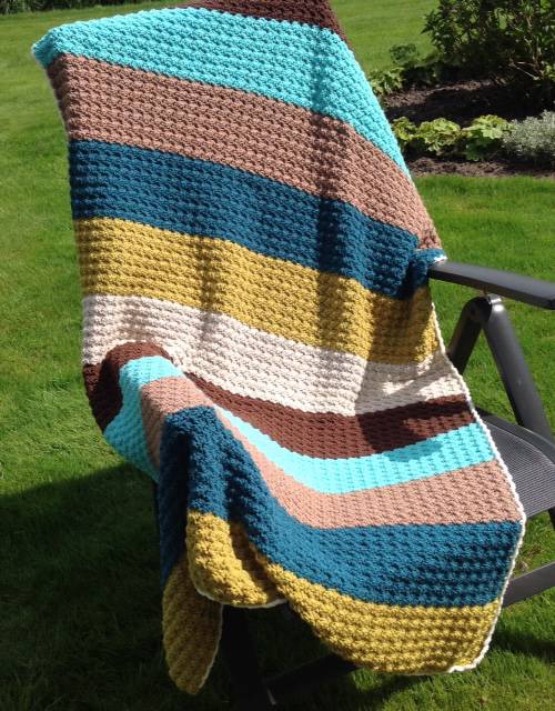 Ik heb dit patroon gebruikt voor de babydeken in retro kleuren. Voor dit dekentje heb ik 147 steken opgezet en verder gehaakt zoals in het patroon staat aangegeven. Het is een erg leuk patroon om te haken!