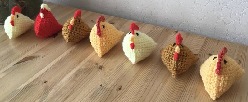 Ik heb geen kippen meer in voorraad, maar ik kan ze haken. Belangstelling? Neem contact op en laat weten welke kleur u